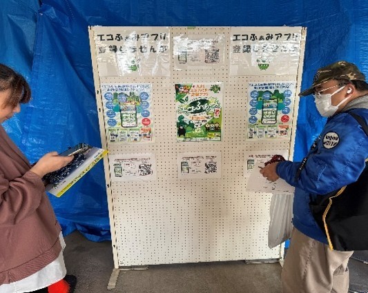 また、環境家計簿とエコふぁみアプリのちらしを配布し、来場者にエコふぁみアプリ登録を促した。