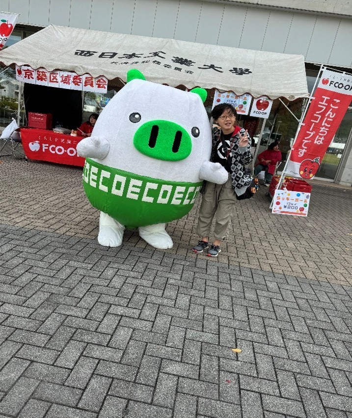 西日本工業大学 美夜古祭(学園祭)に来場した県民に、エコトンを使用しエコふぁみアプリの啓発と環境家計簿を渡し、エコ活動への興味付けを行った。