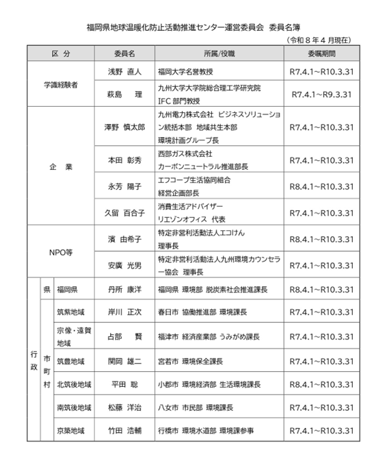 | 福岡県地球温暖化防止活動推進センター運営委員会設置要綱 |